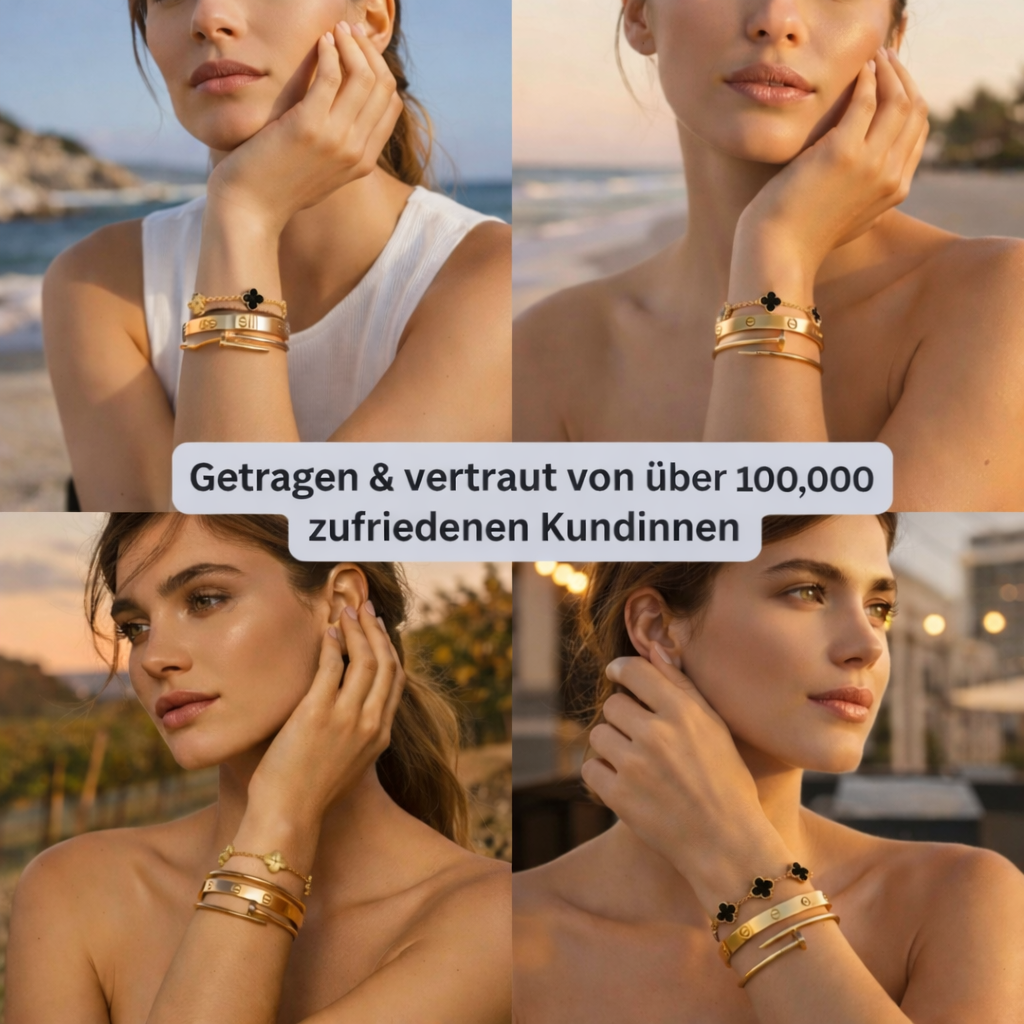 Unser Schmuck ist für den täglichen Gebrauch gemacht: vollständig wasserfest, anlauffrei und farbbeständig.